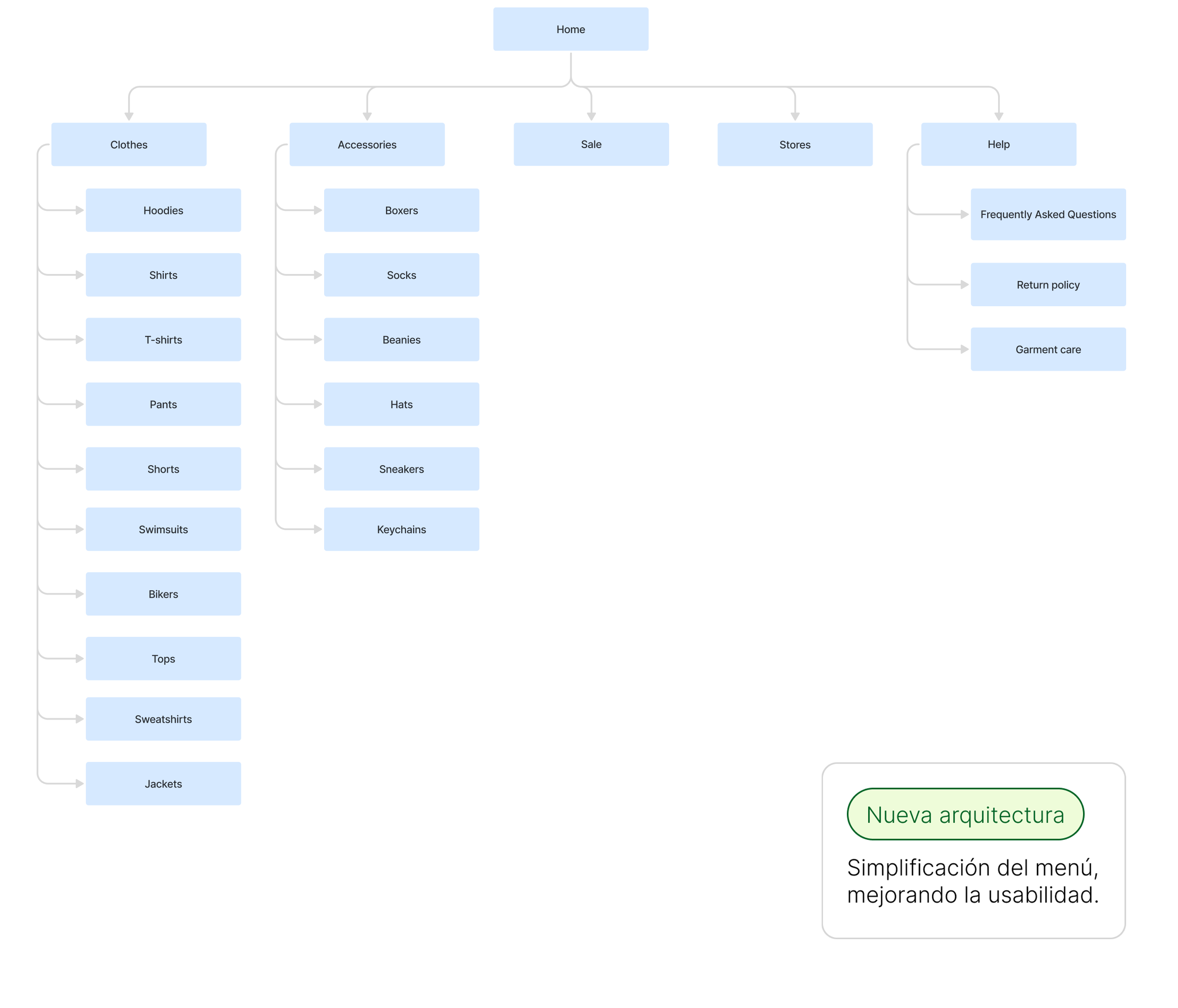 Con toda esta información, decidí simplificar la arquitectura de la información, haciéndola mucho más intuitiva y asegurando que el proceso de compra fuera rápido y eficiente.